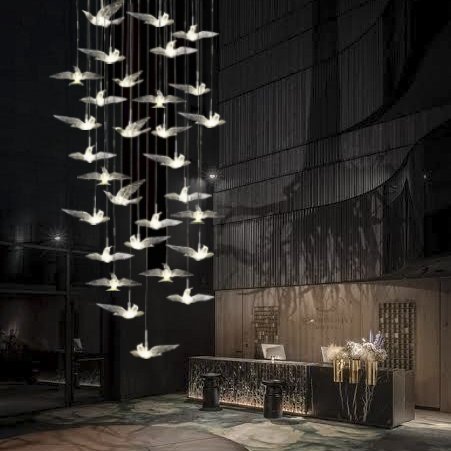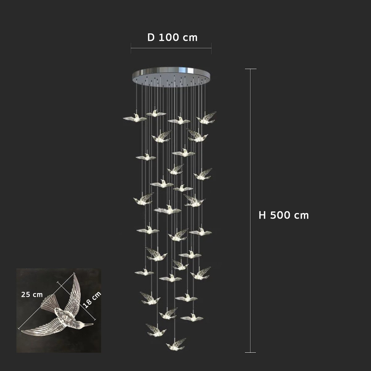 โคมไฟแขวนเพดาน รุ่น ฮัมมิงเบิร์ด 30สีเงินขนาด Ø1000 X H5000 mm.Bulb: 30 x G4 LED Light